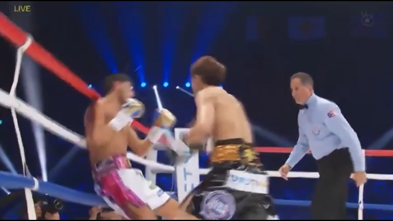 ⑵踏み込み持ったサウスポー&一撃左ストレート使い